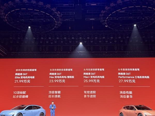 【CNMO科技消息】4月22日久久午夜电影网,阿维塔06T正式上市发布,新车共推出5款车型,售价依次为Elite版21.99万元、Max纯电版和Max增程版23.99万元、Max+版25.99万元、以及Performance版27.99万元。主打“智美全场景运动轿车”。